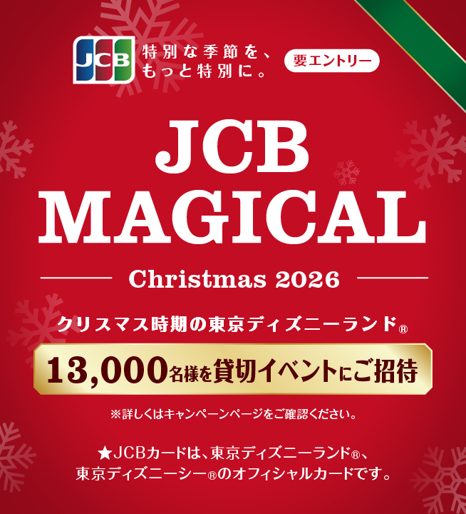 帯広本社 釧路支店 札幌支店 北見支店 JCB マジカル クリスマス 2026 クリスマス時期の東京ディズニーランド(R) 完全貸切キャンペーン 期間2025年12月5日(金)~2026年6月15日(月) エントリーしたJCBマークのついているカードのご利用合計金額1万円(税込み)以上ご利用で応募可能!※JCBプリペイドおよび一部のカードは本キャンペーンの対象となりません。